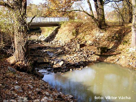 Rybnik Bezdrevský výpusť rybníka kaskáda