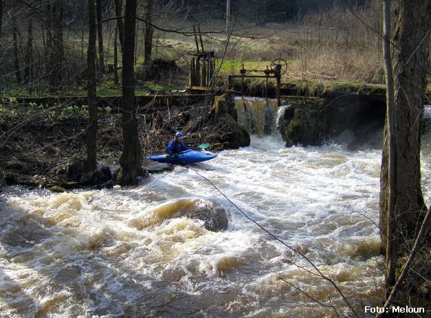 zapora (schodek) wysoki (m) 0.3m przejezdne i następujący 600m most drogowy Kfely vl 1,3 km |