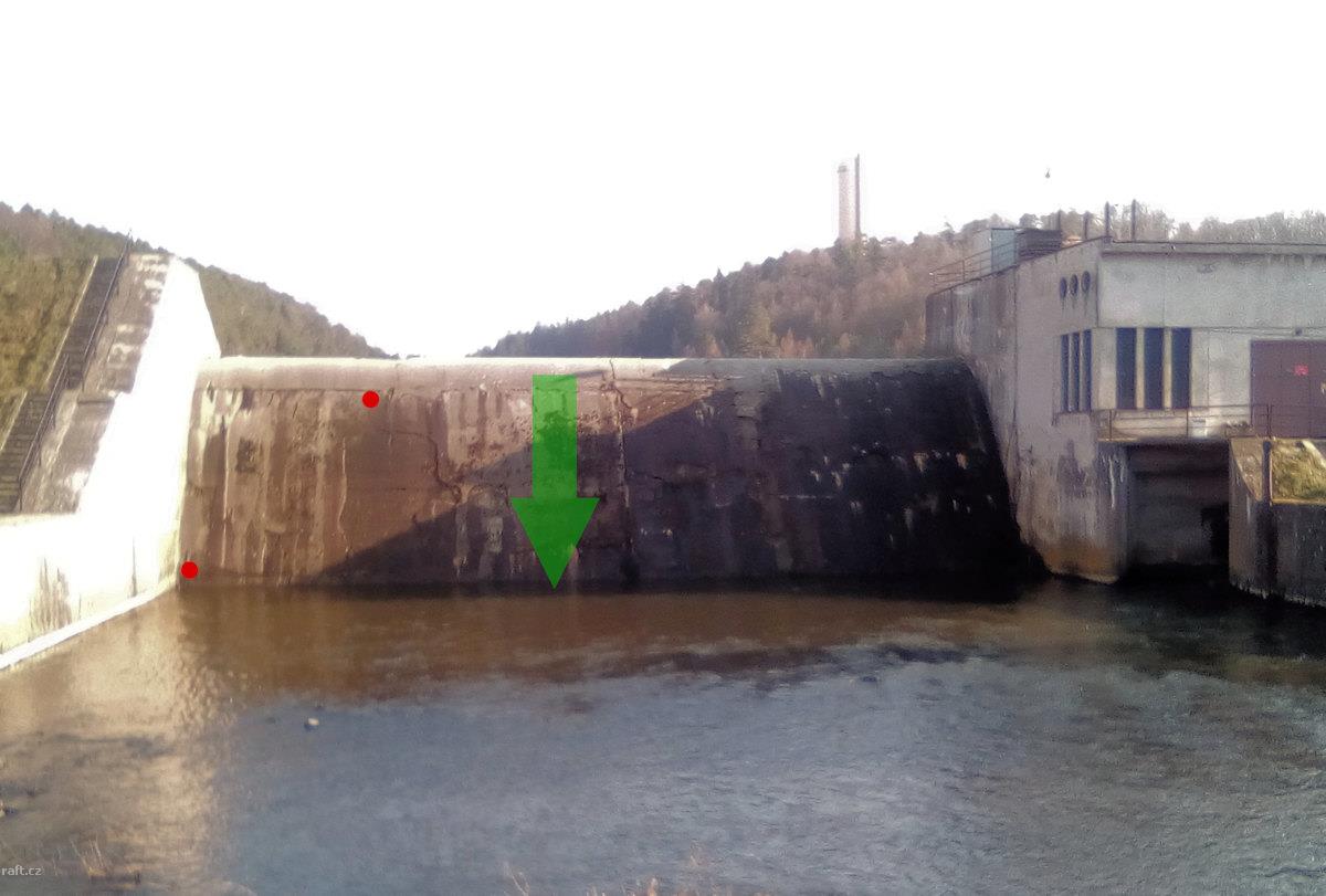 r.km 30,4 hráz vyrovnávací nádrže Svídnice - pozor na trčící roxory červeně označené!
