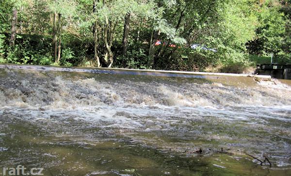 Před jezem je panelový brod.