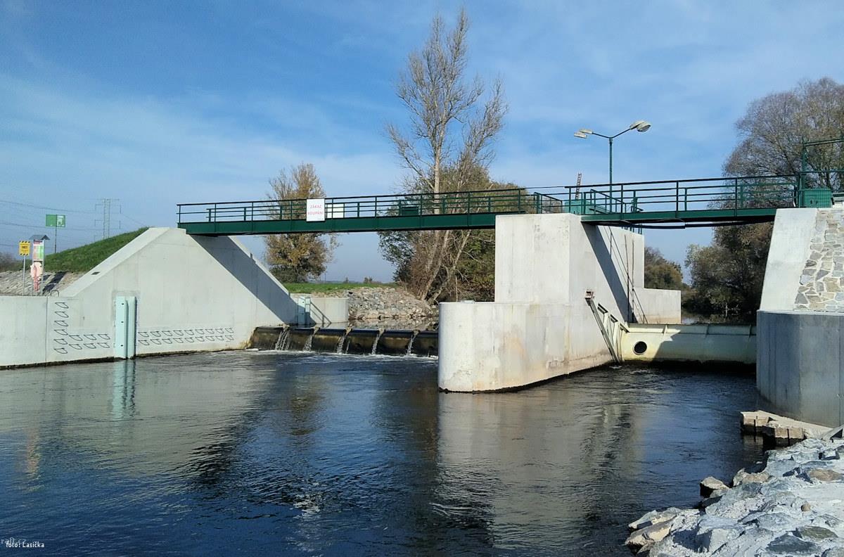 r.km 79,5 Jez Turnov má na pravé straně rybí přechod, po roštech nad ním lze přenést loď, 11/2023