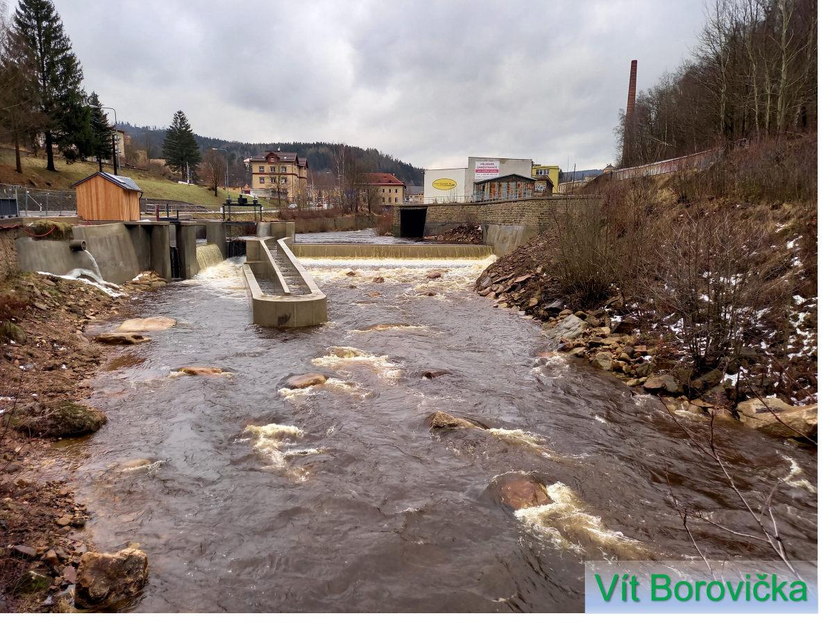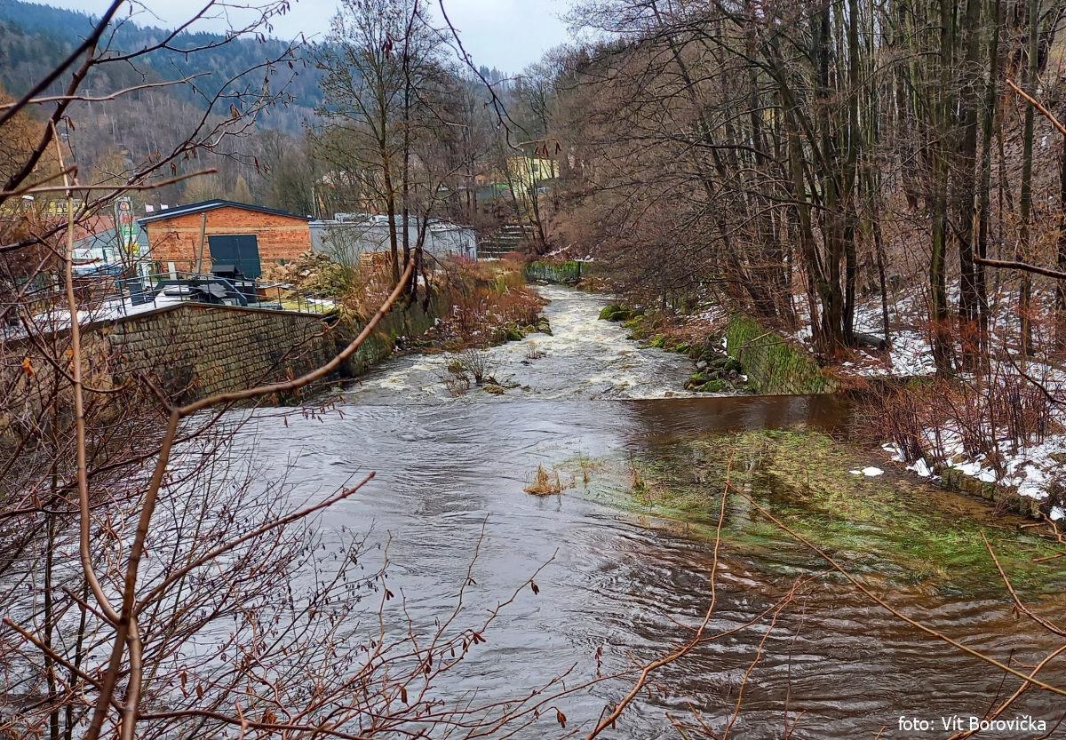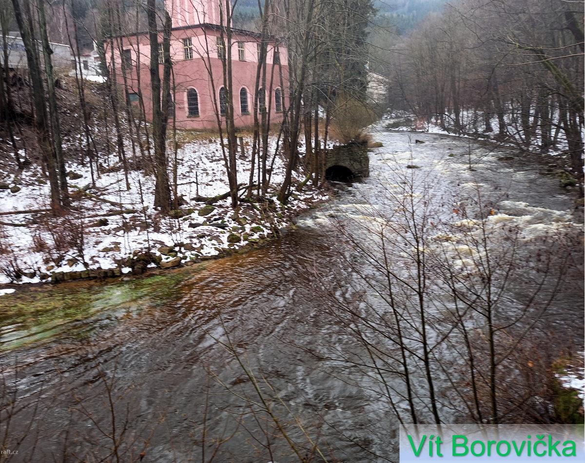 r.km 16,3 Vyústění náhona od jezu v Tanvaldu