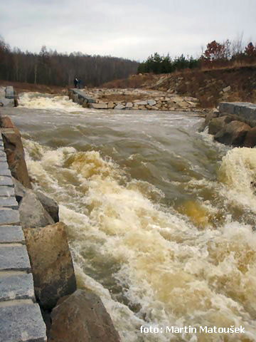 zapora (schodek) podczas wysokiego stanu wody !!! - regulace, špatně se vystupuje 0,3 km |
