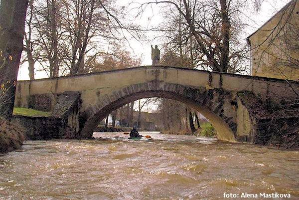 wysoki (m) 1.1 młynówka lewo, przejezdne (pozor - podlemletá břehová zeď, voda teče okolo jezu) 0,2 km |