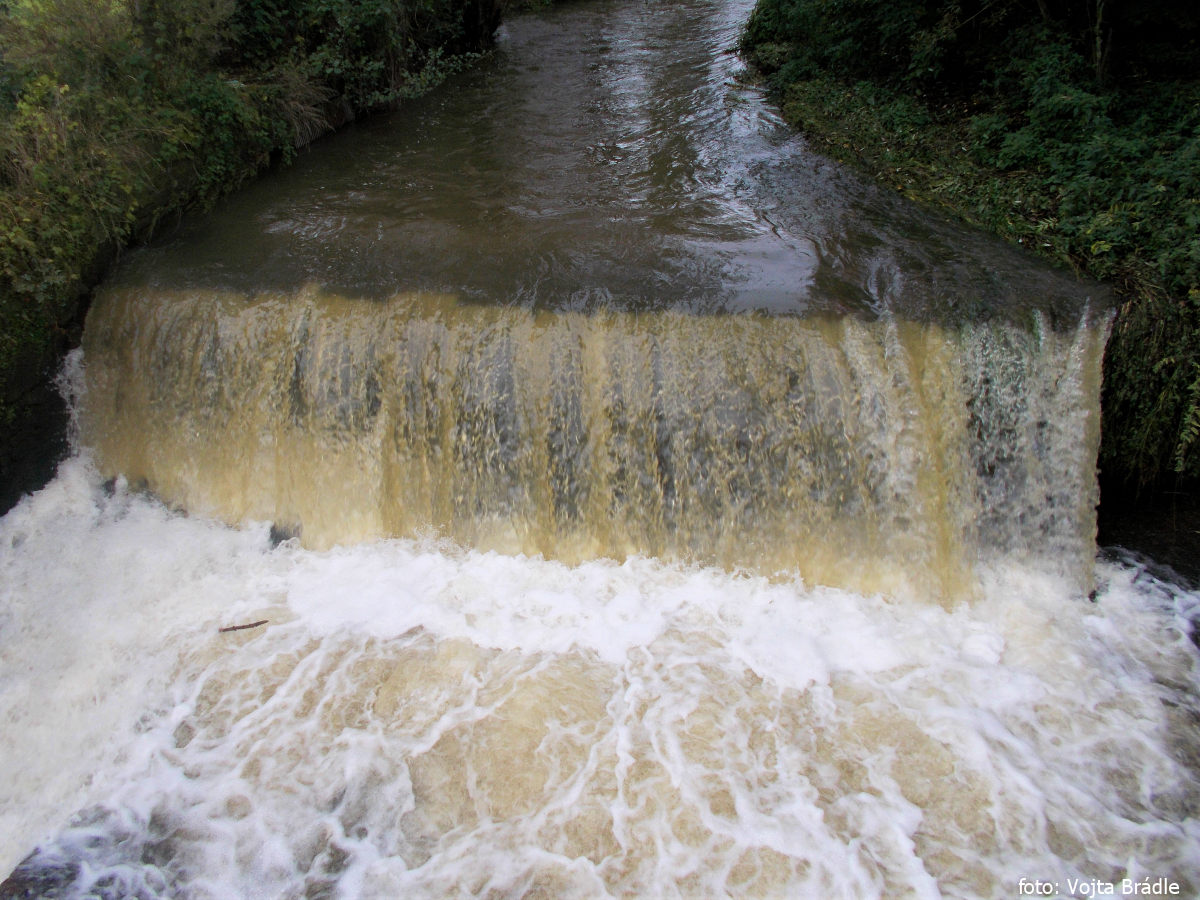 dopływ lewo Kvítecký potok i następujący 100m most drogowy 0,6 km |