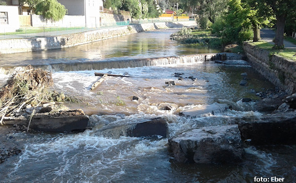 zapora wysoki (m) 3.0 m nieprzejezdne, , dalej cca 15x zapora (schodek) przejezdne až na soutok s Berounkou 1,3 km |