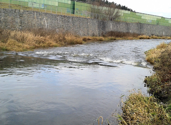 wysoki (m) 1,4 !! młynówka prawo, začátek regulace koryta  0,8 km |