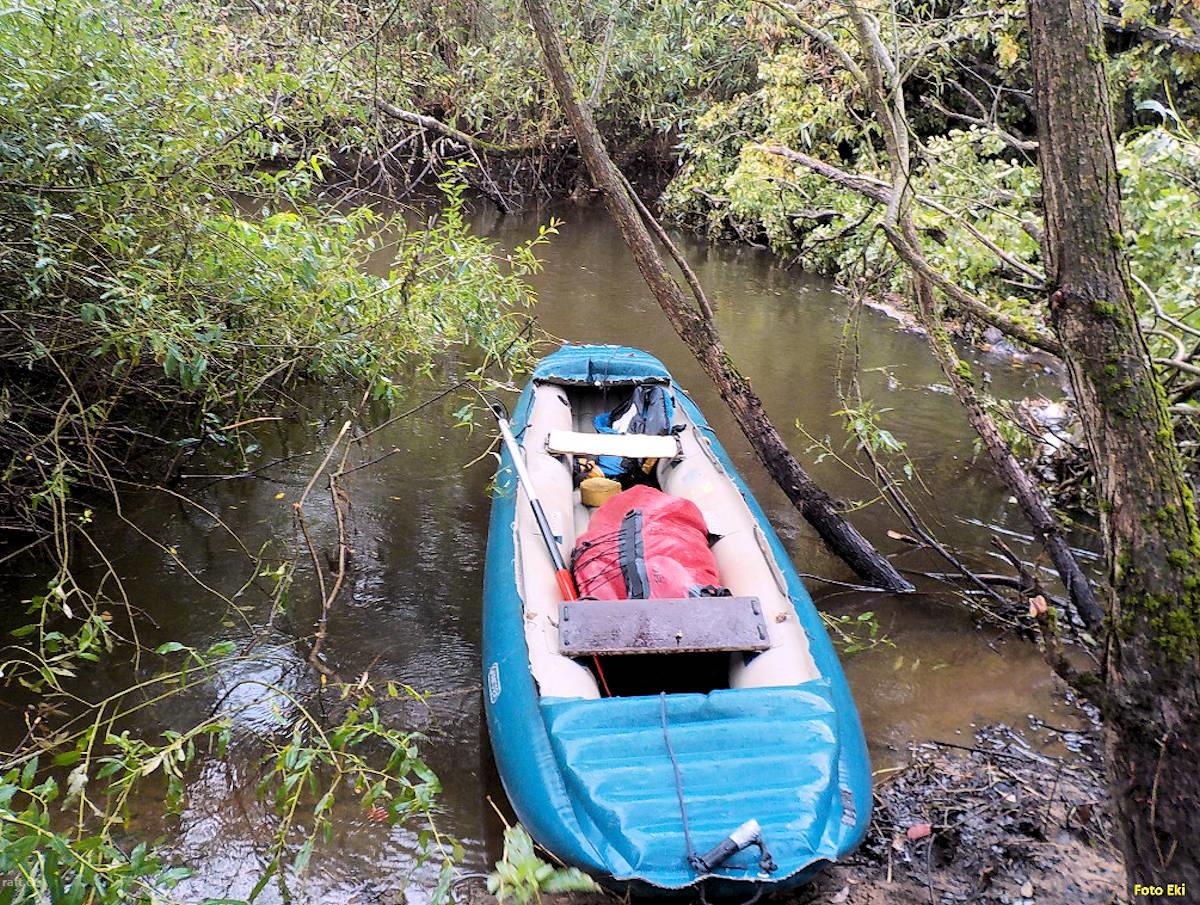 Lužnice 7.5. - Benešův Mlýn - šlajsna zanesená naplaveným dřevem, vak v poli vedle šlajsny je nahraz ...