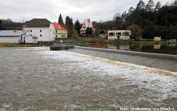 r.km 35,6 Jez Kvěchův mlýn při 25 m3/s v Klenovicích
