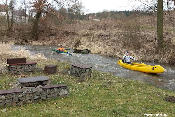 27.2.2010, stav Radíč 5k/65cm. Občasné vyhýbání kamenům, v peřejkách slabší II, všechny jezy sjízdné ...