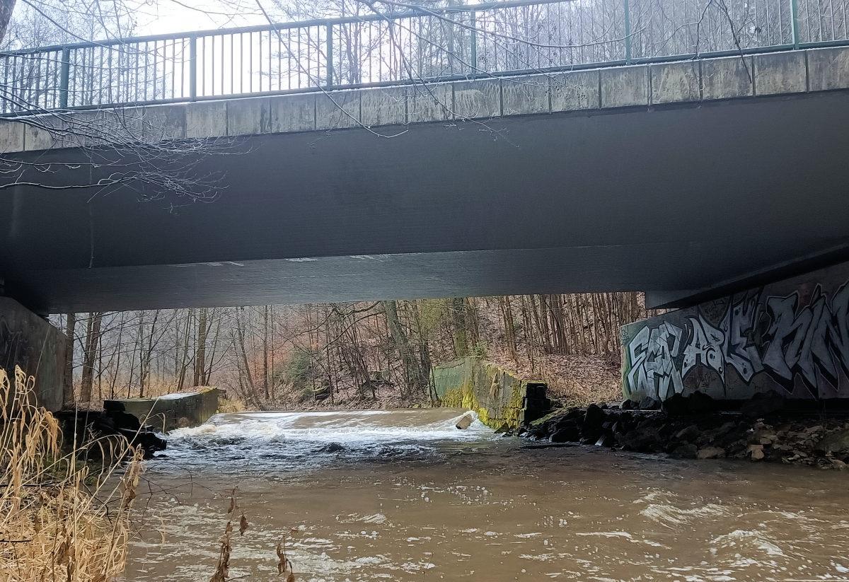 r.km 49,3 Nesjízdný jez, stav 65 cm na vodočtu v Maršově