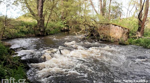 r.km 49,7 provalený jez a 50m peřej