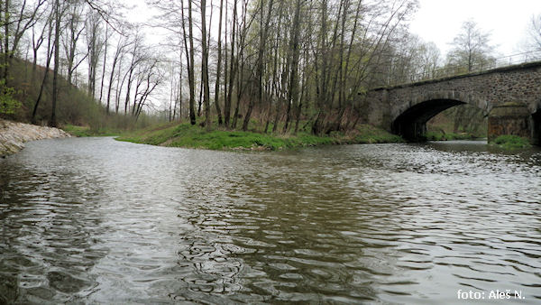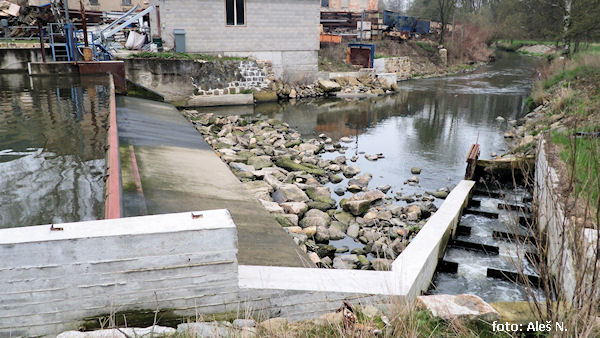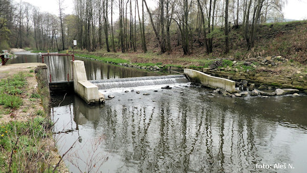 zapora przenosić prawo wysoki (m) 1,3 !! młynówka lewo, (lze jet náhonem) most mostek dla pieszych Dworzec kolejowy B. Kostel n. N. 500 m lewo, 1,6 km |