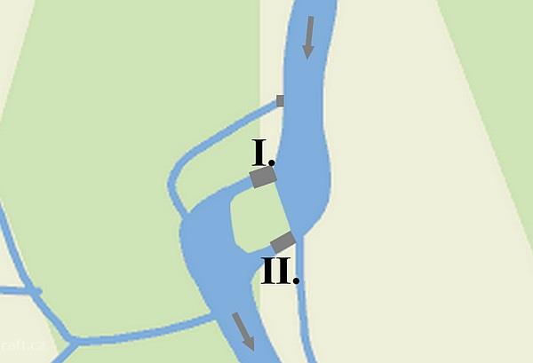 Ve Staňkově za jezem (53,0) je šedý most (52,9) ...