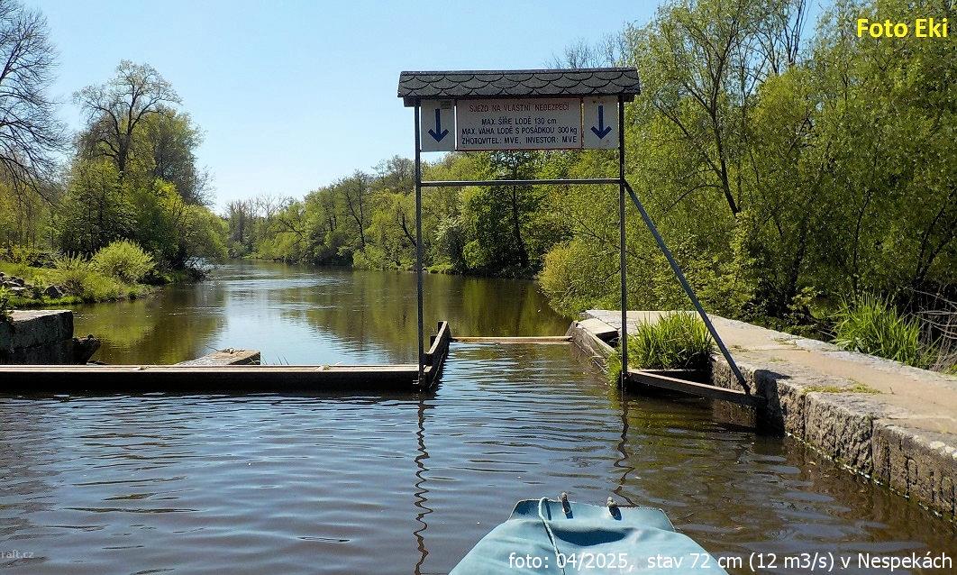 Jez Podělusy je zcela opravený a průjezdný sportovní šlajsnou u pravého břehu. Před šlajsnou jsou ka ...