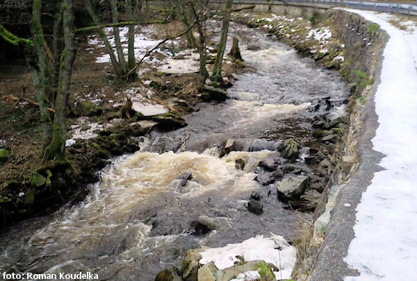 zapora(schodek)!! stromy a větve v řečišti 0,2 km |