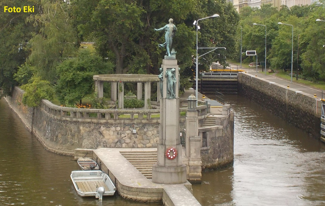 most drogowy Jiráskův most zapór z przepusti w środku przenosić lewo wysoki (m) 1,4 !! Štítkovský jez, PK lewo, Slovanský ostrov prawo, Dětský ostrov lewo, Mánes vp 0,7 km |
