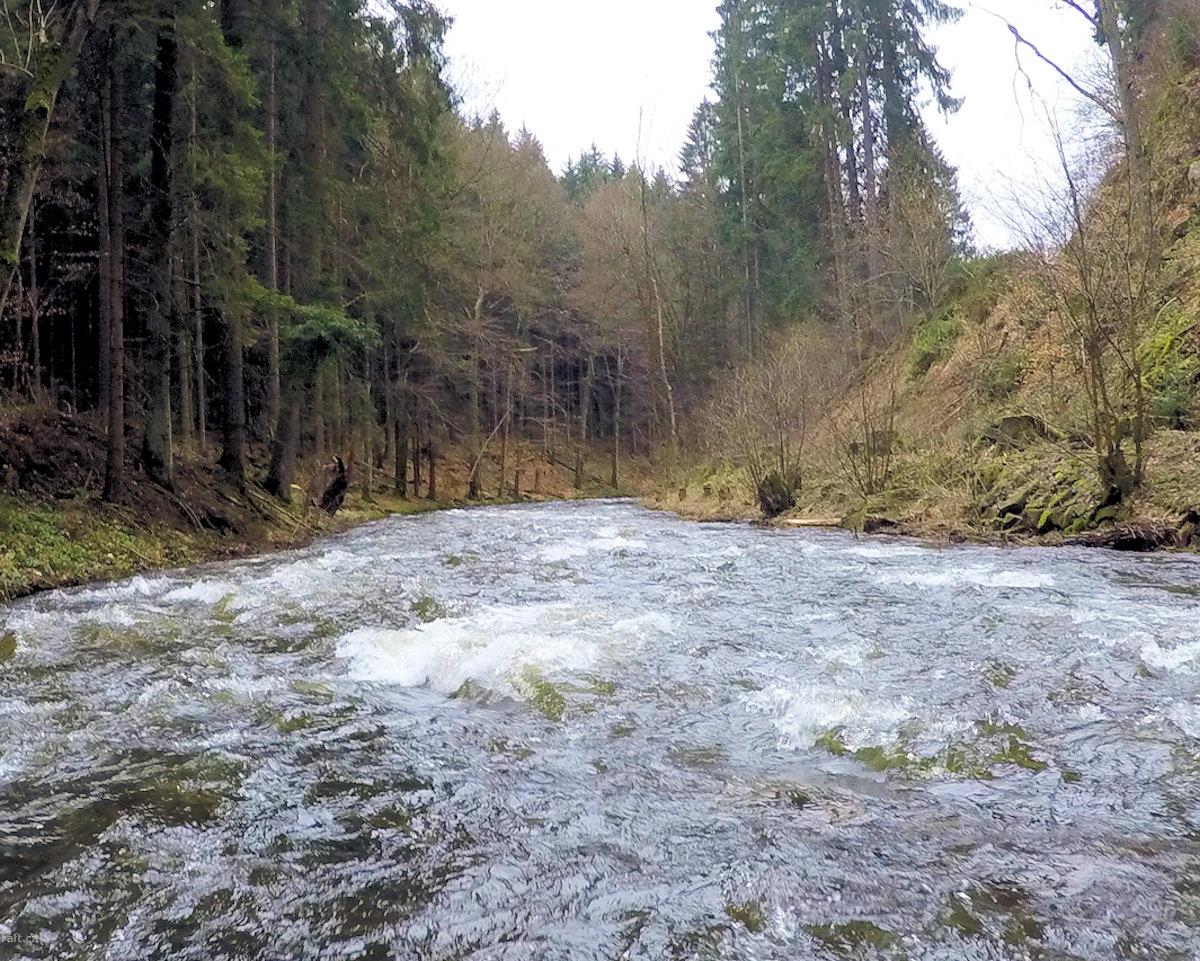 V úseku 1km nad soutokem s Říčkou je několik padlých stromů a zátaras ze stromů a klacků. Přenášení ...