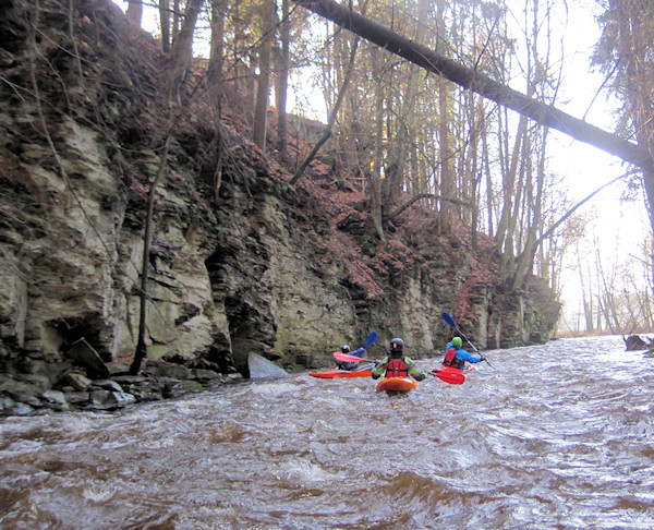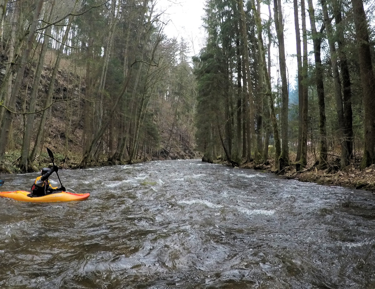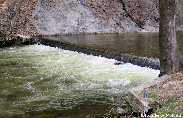 wysoki (m) 2.5 nieprzejezdne, długo młynówka lewo, regulační zdi !!, nutno přistát před nimi a přenést přes most