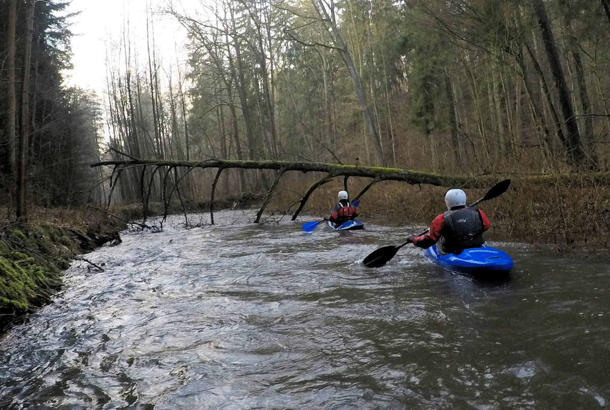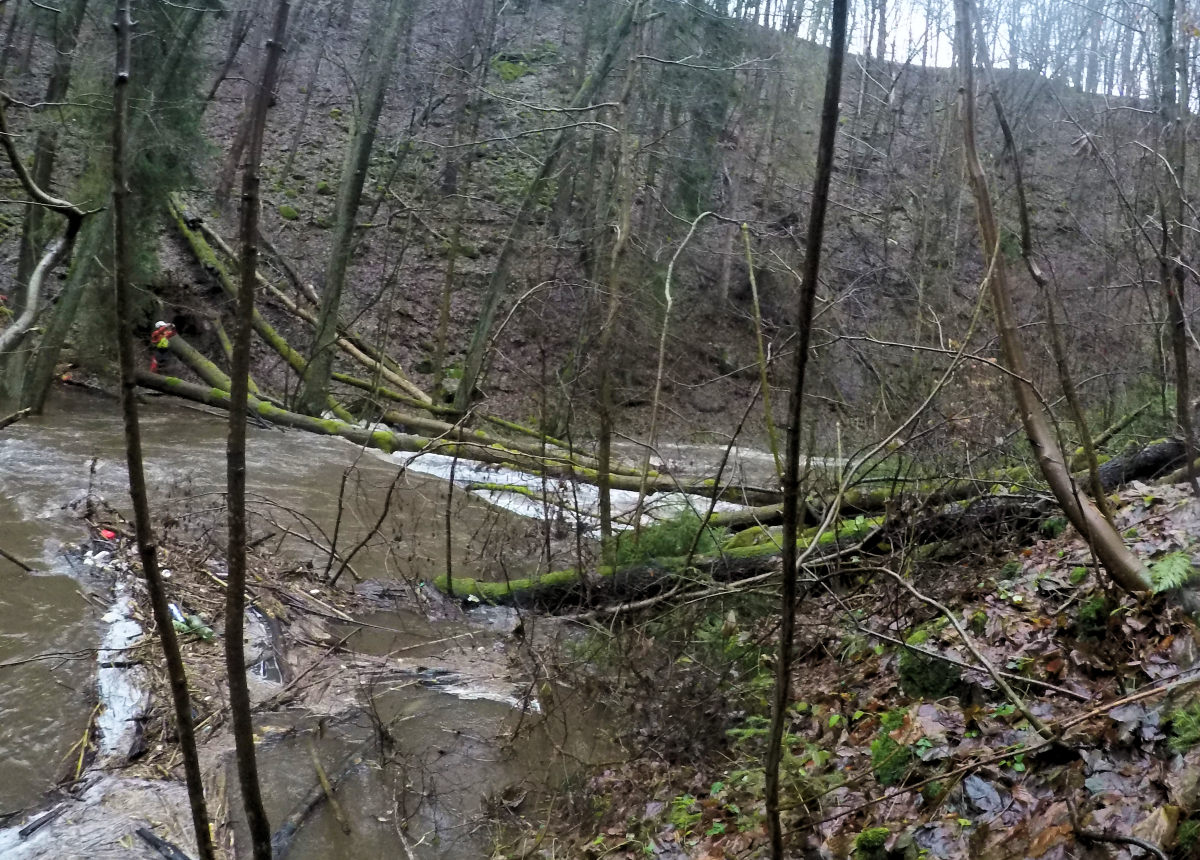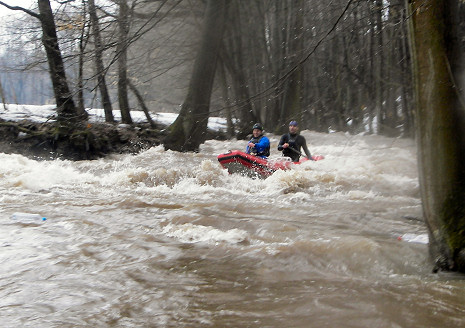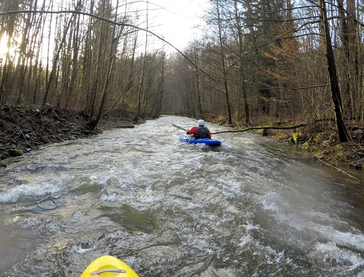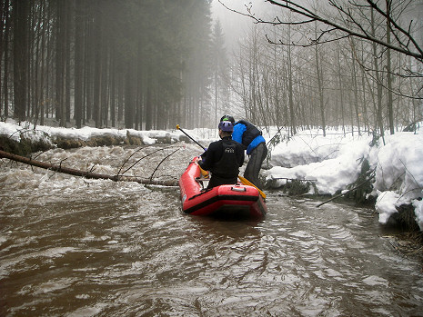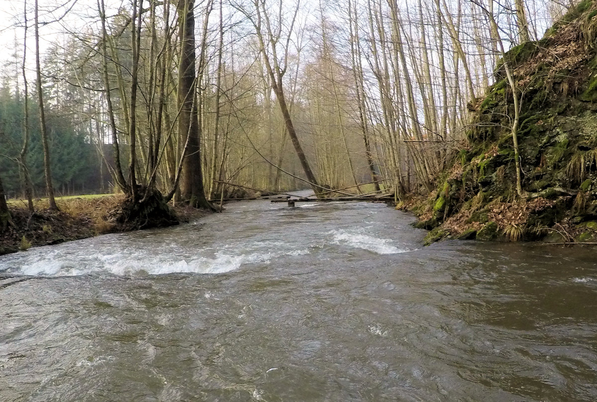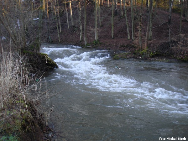 i następujący 150 m niski most mostek dla pieszych nieprzejezdne, !! i następujący 200m dopływ lewo Hluky, dalej pozor na padlé stromy!