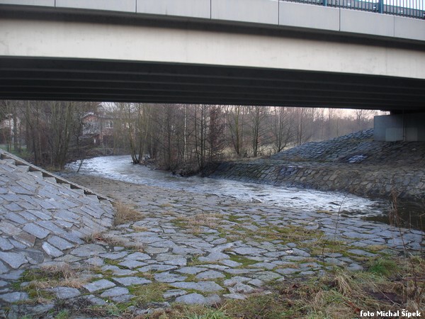 dopływ lewo Lomský strumień Vitenčův mlýn prawoi następujący 200m most drogowy (lokalny)