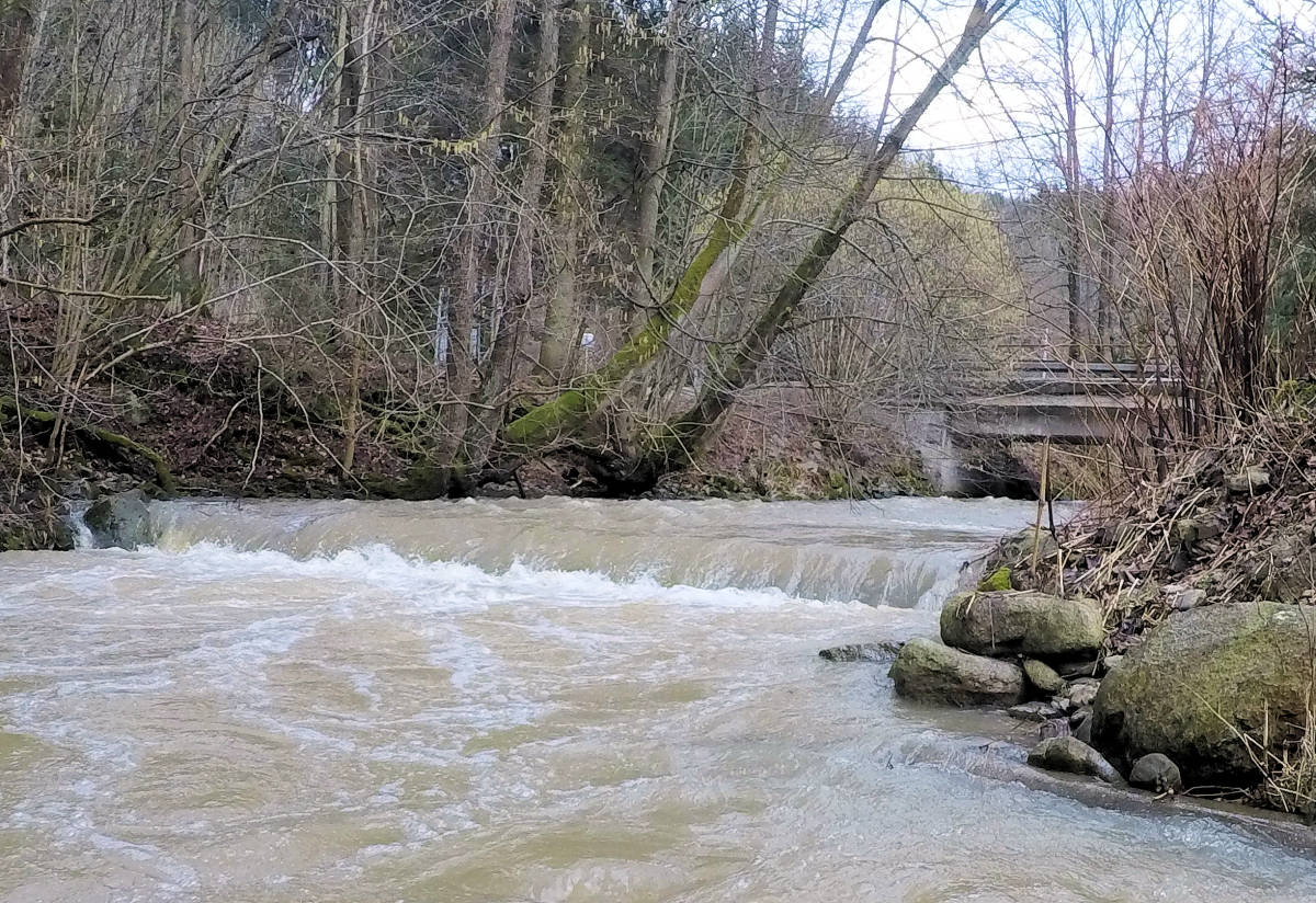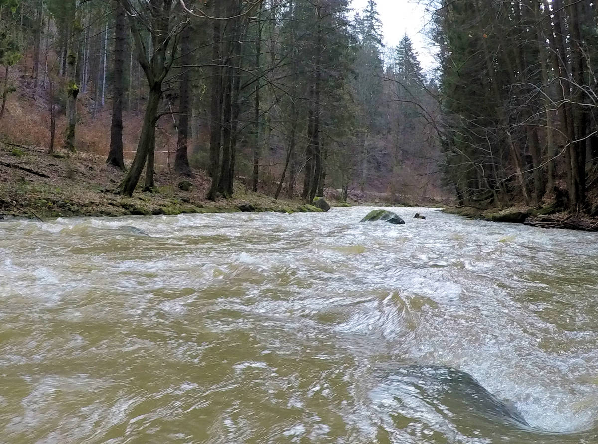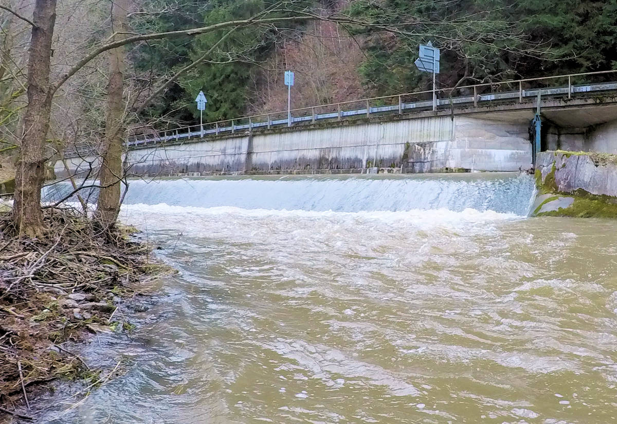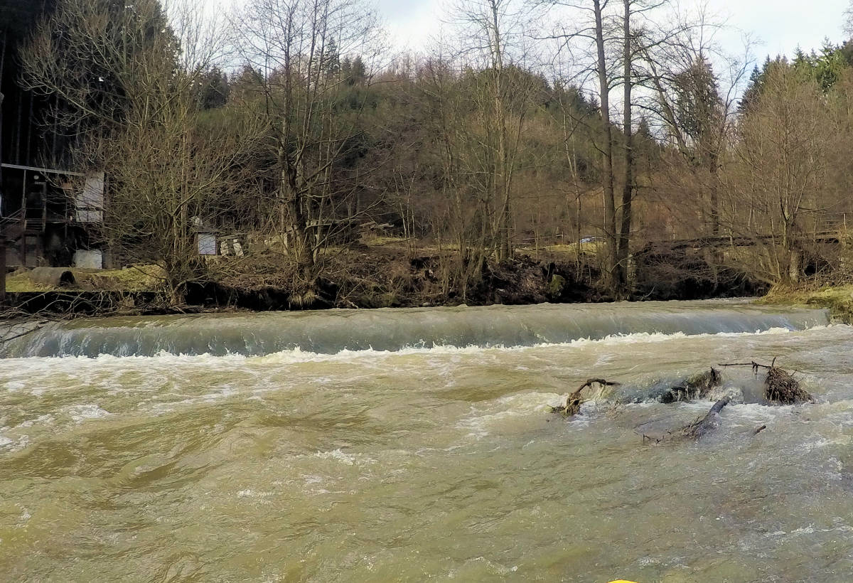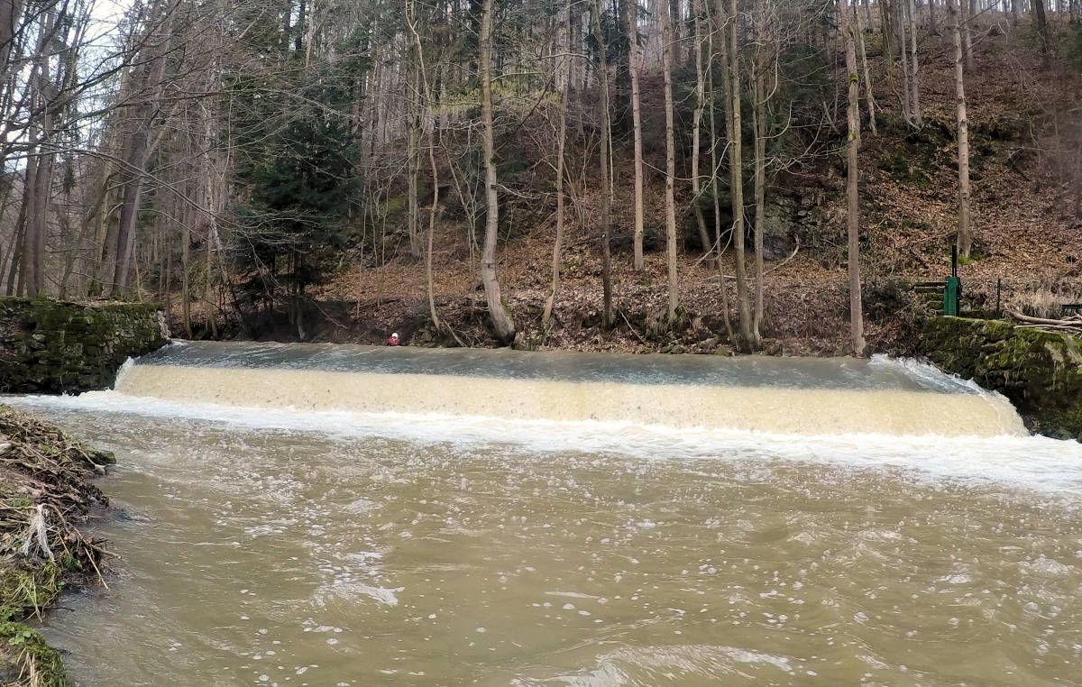 kamienny zapora przenosić prawo (schodek) wysoki (m) 0,8m młynówka lewo, przejezdne i następujący 50 m dopływ prawo potok 1,8 km |