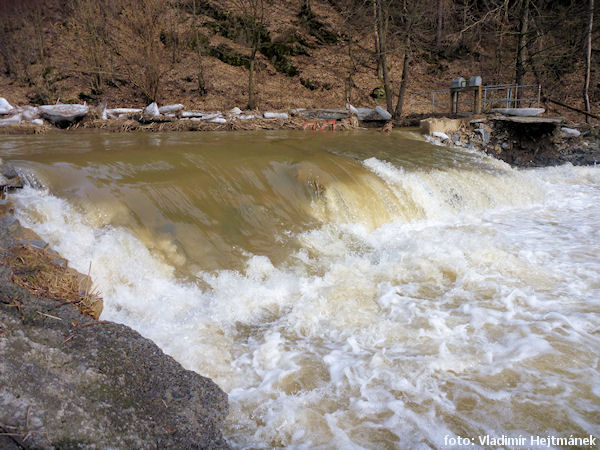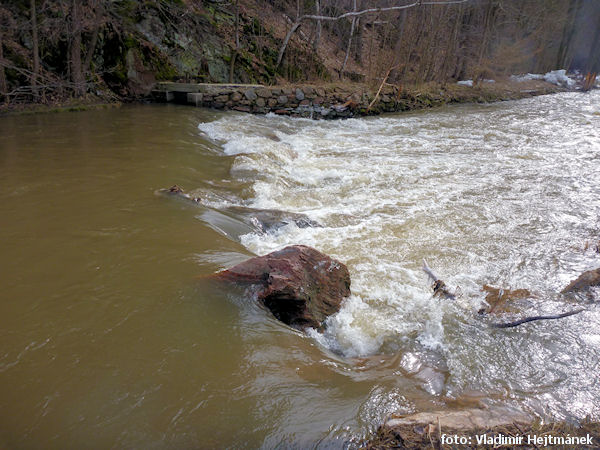 zapora przenosić lewo wysoki (m) 1,8 !! młynówka prawo, most drogowy (lokalny) ruiny Loučky 500 m lewo, 0,3 km |