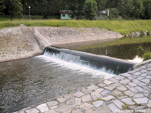 Přítok Odry Bílovka - úpravy koryta a opevňování břehů na více místech ve Staré Vsi. Pozor! Nyní sta ...