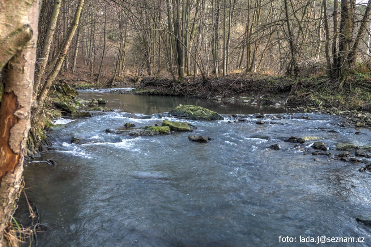 dopływ prawo Pulčínský strumień (kamenitá bystřina se spádem 3%, za VV zřejmě sjízdný – akční)  2,2 km |