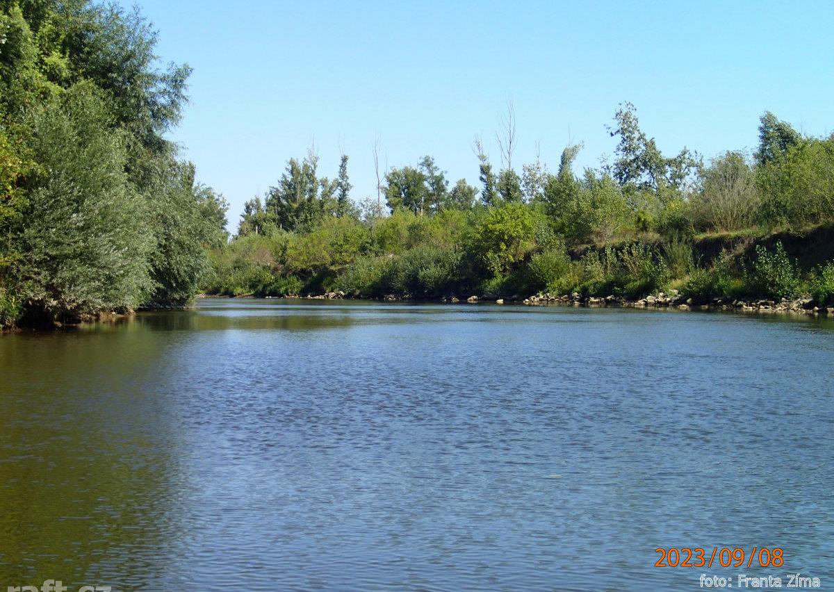 20.8. přehrada v Šalkové vypuštěná, podél obou břehů je spousta hlubokého bahna, vytáhnout loď je po ...