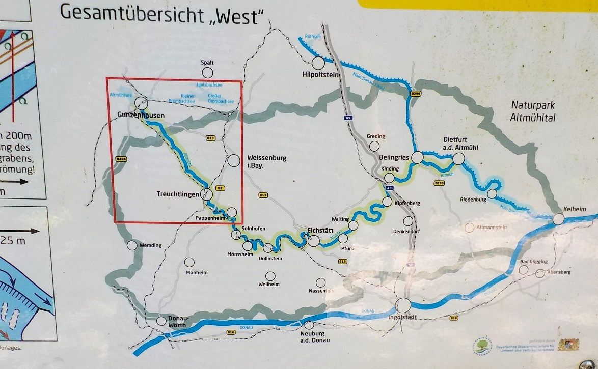 Jedeme jen jedním autem. Začínáme proto ve městě Treuchlingen, kam se dá vrátit vláčkem podél řeky.