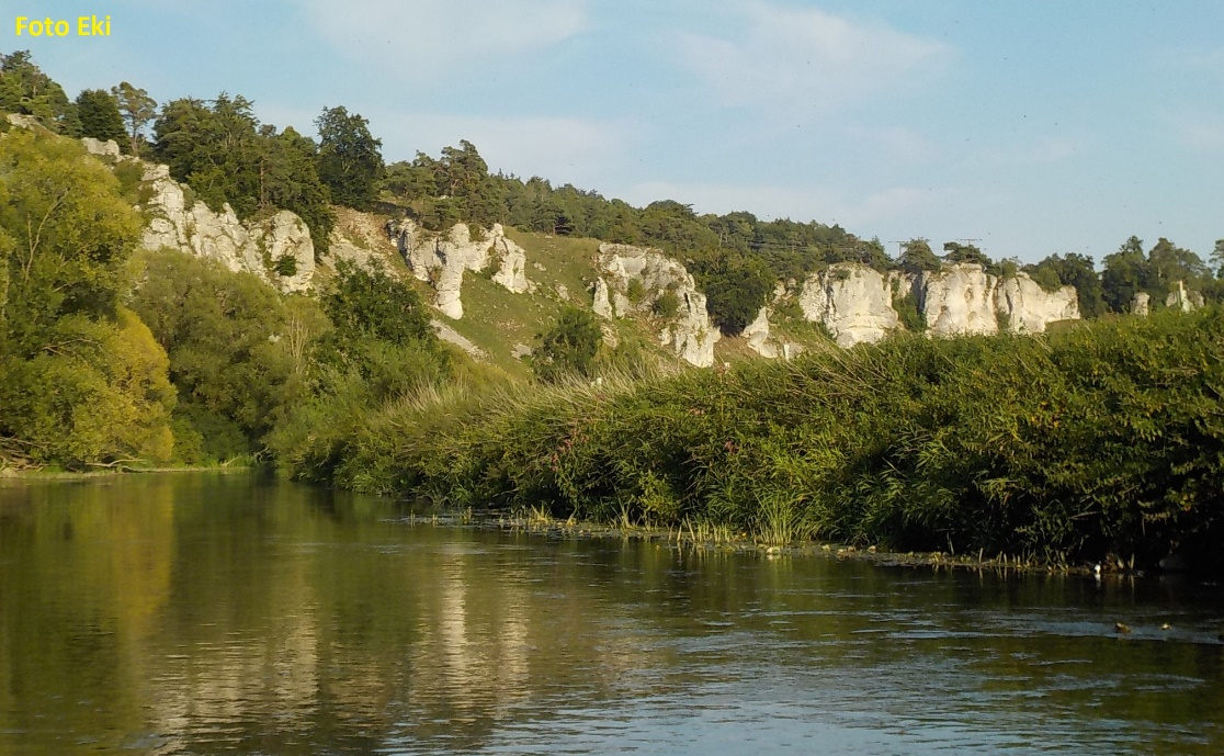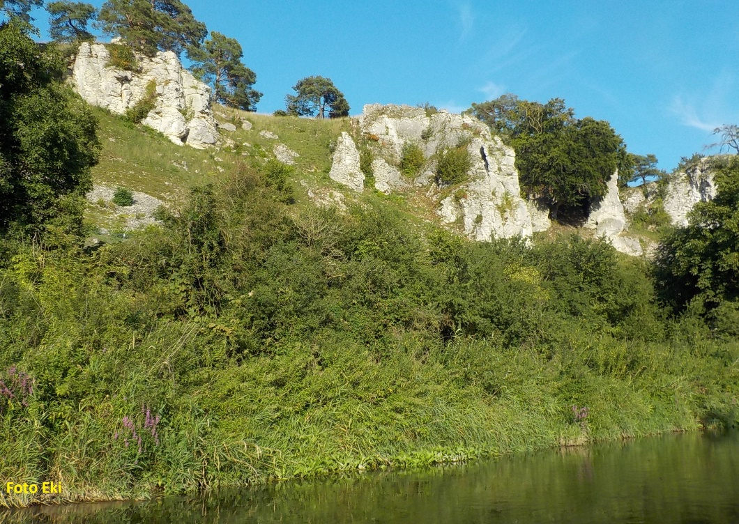 Několik vápencových skal  - apoštolů – při pohledu z řeky