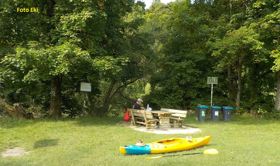 Pak doplouváme do historického městečka Dollnstein, kde je příjemné výstupní místo s parkovištěm. Náš dnešní cíl. Nechávám háčka se slunit u lodě a vracím se vlakem pro auto.