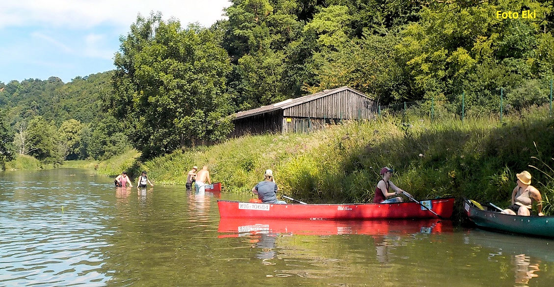 Celkově má řeka Altműhl příjemnou středoevropskou atmosféru. My jsme si tu jak rychlostí proudu, tak počtem vodáků, historickými památkami a vápencovými skalami připadali jako někde na Berounce…