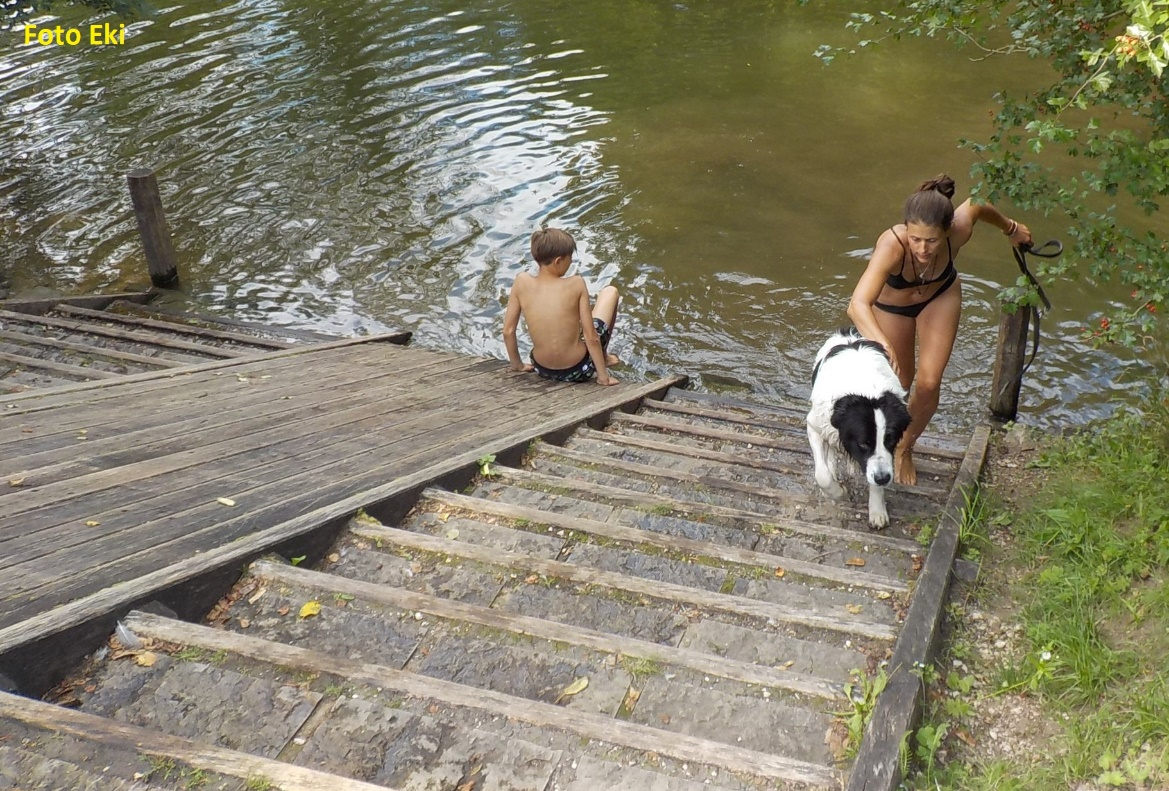 Objedeme nádraží a přistáváme u místního kempu s nesjízdným jezem. Kemp je narvaný, okolo křičí koupající se děti. Plujeme dál.