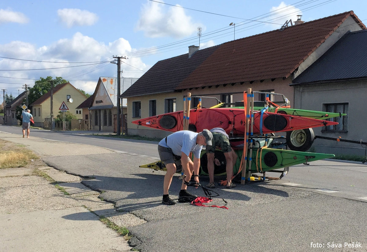 Dobrodružství začalo nenápadně na loděnici Káčat. Snad každý den se areálem na traktůrku se sekačkou prohání starší muž a seče trávu. Od správce jsem se dověděl, že tento travní muž vlastní VW Transporter a vzdor těžkému handicapu jezdí jako šofér se sportovci po celé Evropě. I oslovil jsem muže, a protože jsem to udělal dřív než konkurence a taky protože jej naše cesta zajímala, stal se z muže Honza a my získali kromě kamaráda dopravu a každodenní doprovod podél řeky po celou dobu splutí.