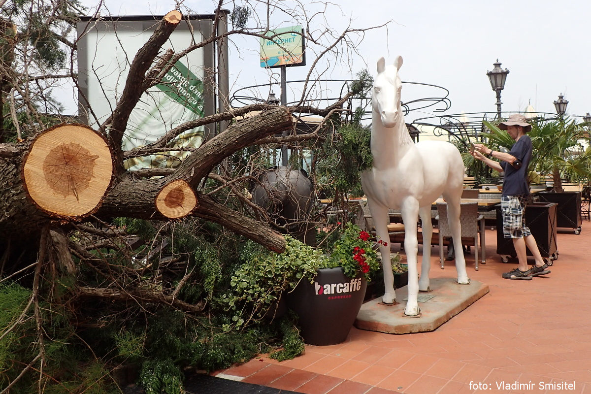 Je slunečné ráno druhý den a my vyrážíme dohnat, co se dá. Vjíždíme do Srbska a vidíme, jakou paseku zde včerejší bouře nadělala. Vyvrácené stromy, zablokované silnice, domy bez střech. Dopravní značky a reklamy ohnuté větrem až k zemi. Všude pracovní čety klestící dopravní cesty a odklízející trosky. Mluvíme s lidmi – vichřice prý byla záležitostí deseti minut a ničila výběrově – jednu ulici celou, druhou nechala stát. Později na Petrovaradinu uvidíme obnovovat celé střechy. Projdeme vzrostlými borovicemi zavalenou exkluzivní restauraci a budeme šlapat po plátech omítky odtržených větrem od zdí pevnosti. Teď však kolem dvanácté přijíždíme k Dunaji na místo startu ve zdejším „víkend naselenje“, což je označení pro komunitu různorodých domků určených k rekreaci. Prohlížím si místo, kde jsem plánoval první nocleh: je zavaleno stromy a poseto odtrženými větvemi. Neříkám, že bychom to nepřežili. Ale možná taky ne. Stan je proti stromům ve vichřici mizerná ochrana.