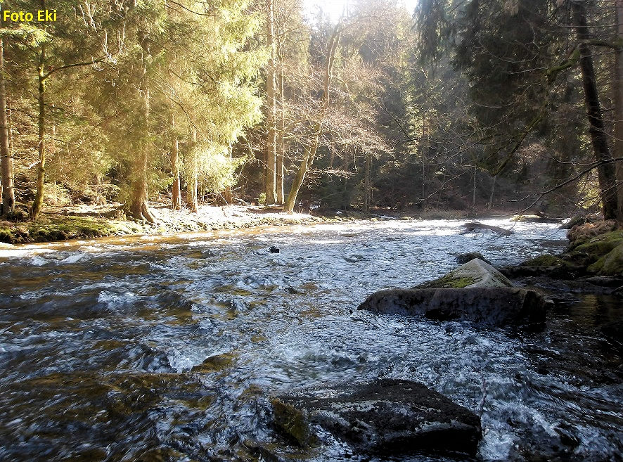 Dzika Orlica pramení v Polsku. I přes tu poučku, že z Česka voda jen odtéká, by bylo možné po ní doplout do Česka. Voda v řece po tání ale rychle opadává a já se tak raději soustředil až na trochu dolnější hraniční úsek toku.
