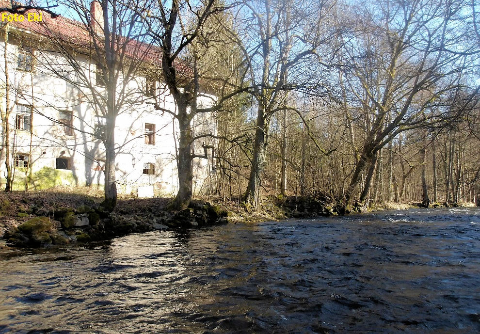 Lehce jsem při focení zaškobrtnul na ortorulových kamenech na rozlivu poblíž velkého domu na polské straně.