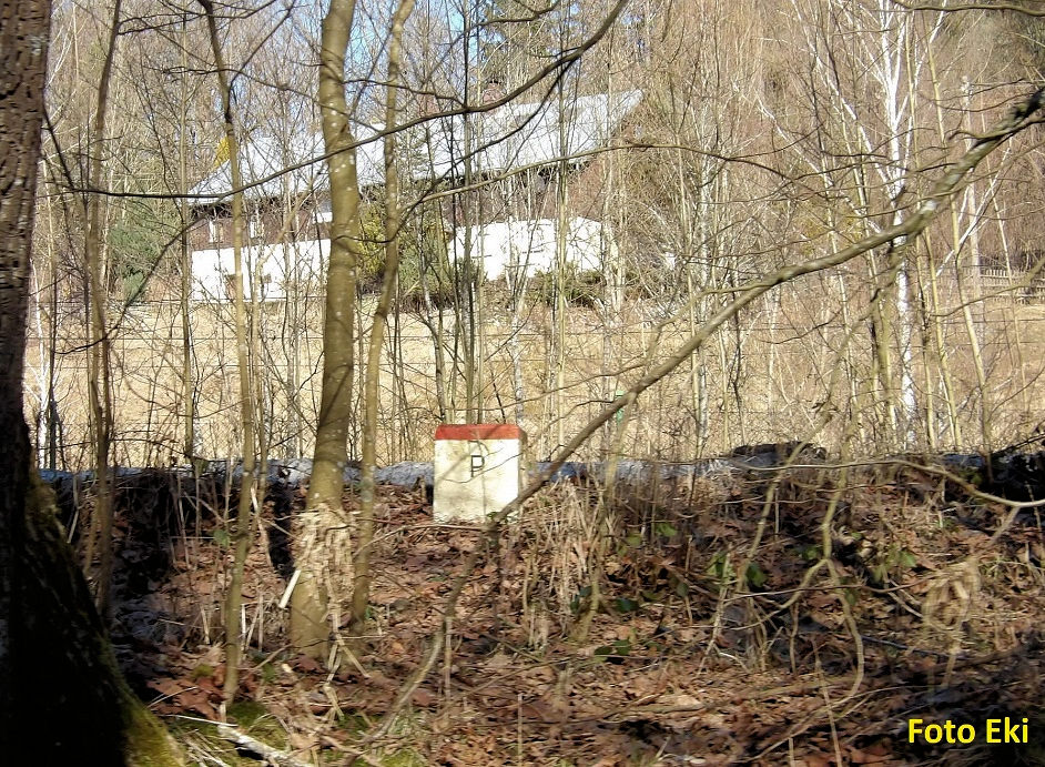 Hraniční znak Polsko na břehu řeky Dzika Orlica