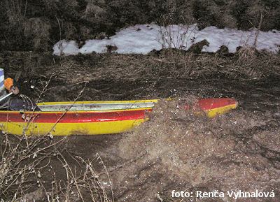 Když v půlce února začalo tát, nebylo pochyb o tom, jak strávíme víkend. Z Prahy jsme odjížděli kolem čtvrté odpolední s celkem jasným plánem. Bezpečně dojet pro loď, vyměnit prodřenou brzdovou hadičku a ještě večer přejet na Chotýšanku. Naše rozhodnutí se změnilo ve chvíli, kdy jsme uviděli rozvodněný Kounický potok. V tu ránu šla oprava brzd stranou. Naložili jsme loď a vyrazili do Kounic s tím, že sjedeme do Bříství. Když bude ještě trochu vidět, tak snad i dál. Po kratičkém kufrování při hledání nástupního místa jsme přišli o drahocennou půlhodinu času a na vodu jsme nasedali již za značného šera. Ale na ten kousek to přece nevadí.