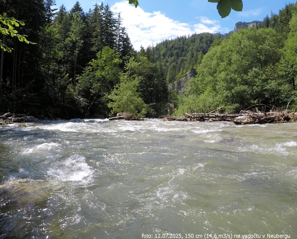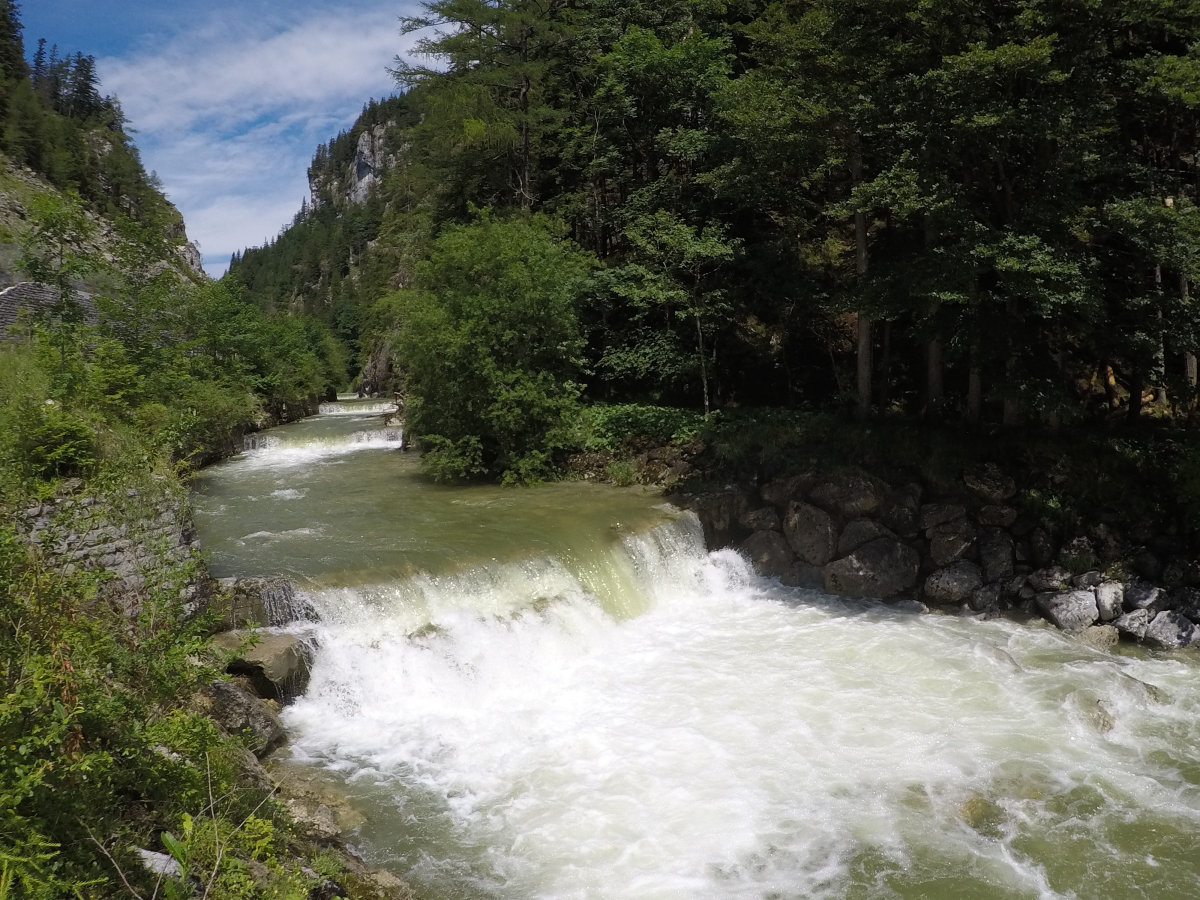 Přejíždíme ze Schwarzy na Salzu, kdy cestou míjíme Mürz. Opět, jako u Schwarzy, má Mürz vodu na limitu sjízdnosti, což v červenci rozhodně nebývá. Vyjíždíme na začátek úseku k tunelu, kde obhlížíme 4 stupně ve vysoké navigaci s velmi obtížným přenesením. Jištění ze břehu v podstatě nejde, musí se vše proskákat a ne vždy na sebe vhodné průjezdy stranově navazují.