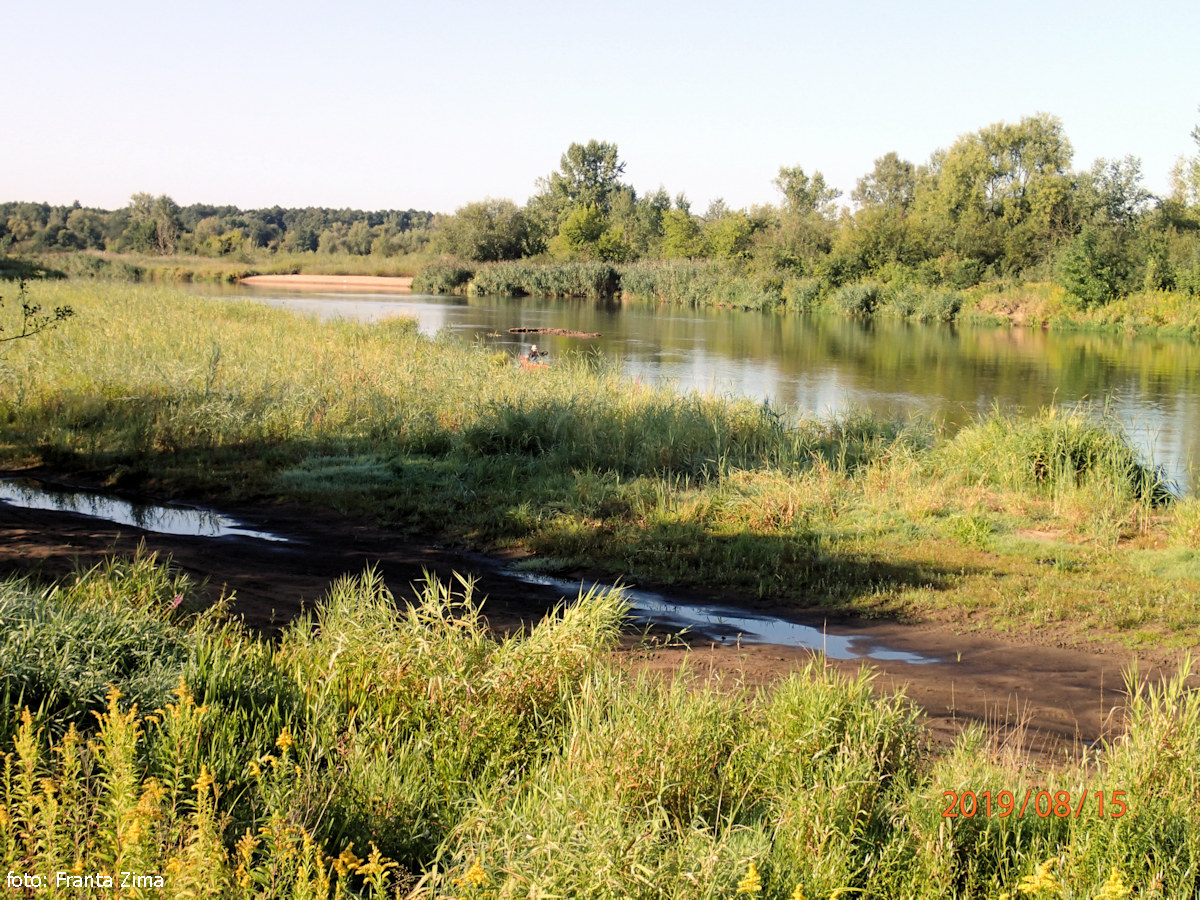 Řeka dál pěkně proudí, protože tu není ani jeden jez. Občas se jen tvoří písečné prahy, kde lodě drhnou o dno, ale vystupovat jsme museli minimálně. Na nákup jsme zastavili v obchodě v Tomczycích na levém břehu. Je zde u mostu na pravém břehu kemp, ale zavřený. Cestou jsme šli také prozkoumat kemp u Bialobrzegu, ale i ten byl mimo provoz. Utábořili jsme se tedy o několik km dál za Bielkowem na levém břehu. Táboření docela pěkné, jen se tu špatně vystupovalo.