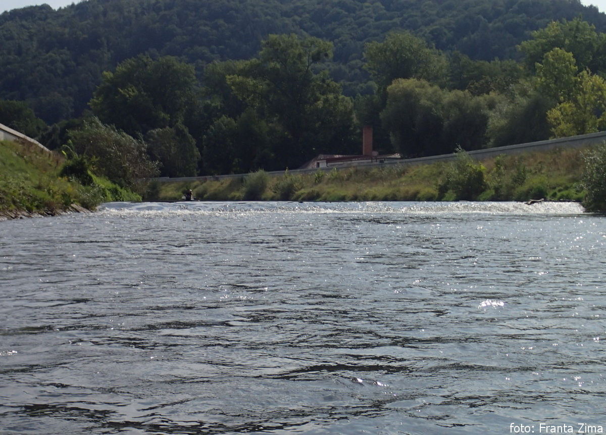 Před jezem v Šálkové jsme se pak zastavili v restauraci na levém břehu na večeři. Jez v Šálkové vypadá úplně jinak než před lety. Tehdy to byl pouze splav a dnes velký vakový jez. Zatímco tenkrát jsme ho přenesli vpravo, tak nyní vlevo. Pod jezem jsme pokračovali asi 1 km, až jsme našli u ústí Molčanského potoka na levém břehu příhodné výstupní místo a na posekané louce bylo i místo na stanování. V noci přišla bouřka a i po ránu trochu sprchlo, ale pak bylo hezky. Ostatně jako celou dobu, kdy jsme byli na řece.