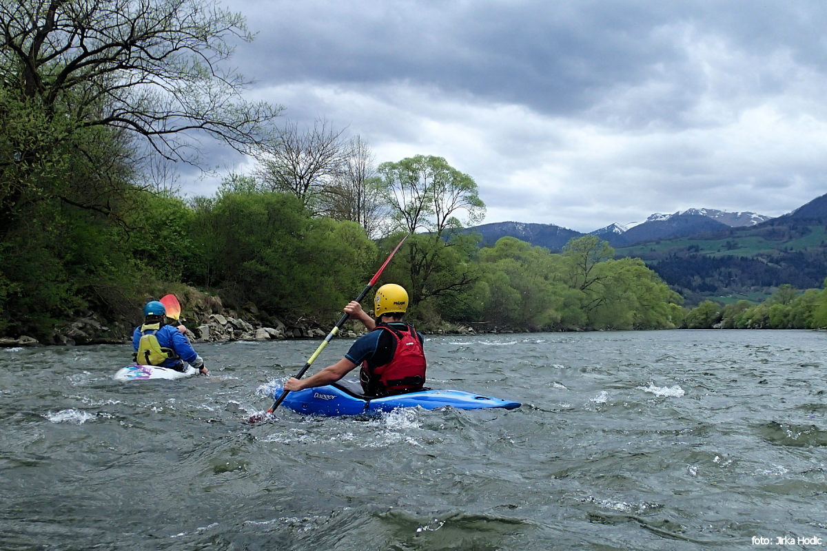 Máme ještě čas, kamarády nemusím moc přemlouvat, takže ochutnáme ještě Oravu. Nasedáme v Zábreži na levém břehu. Vodočet Dierová hlásí 23 kubíků, na rozdíl od Turce je to lehce nad minimem. Orava teče širokým údolím s občasnými lehkými peřejkami. Stupeň v Istebném jedeme na oči středem, je to přehledná peřej s několika vlnami, ale hned v nájezdu míjím ohnutý roxor a co je v peřeji, čerti vědí. S gumou opatrně a za malé vody možná raději přenést po pravém břehu. No, dál už to znáte. Míjíme nasedací místo na spodní úsek v Párnici, proplujeme krásným údolím s peřejkami pod Dierovou a kousek za soutokem s Váhem končíme vpravo u hřiště, kde máme druhé auto (14 km/1 h. 40 min.).