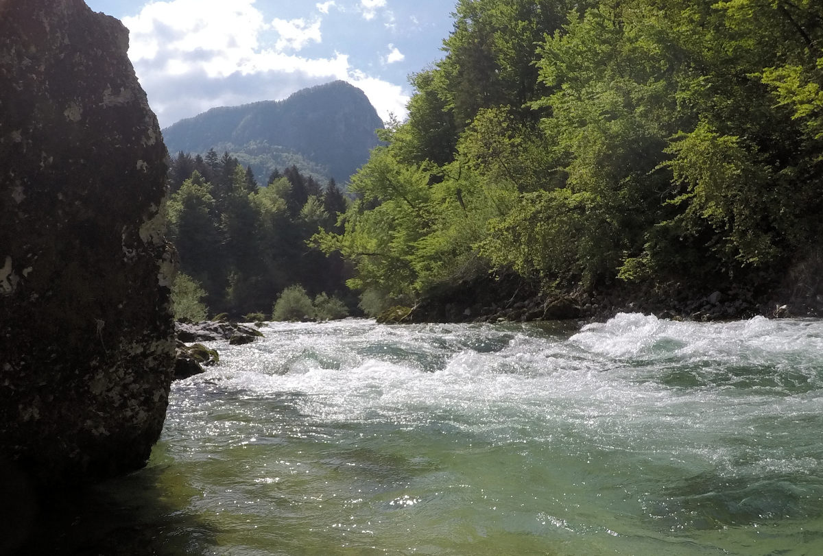 Bohinjka snižuje svůj spád, přesto je nádherná