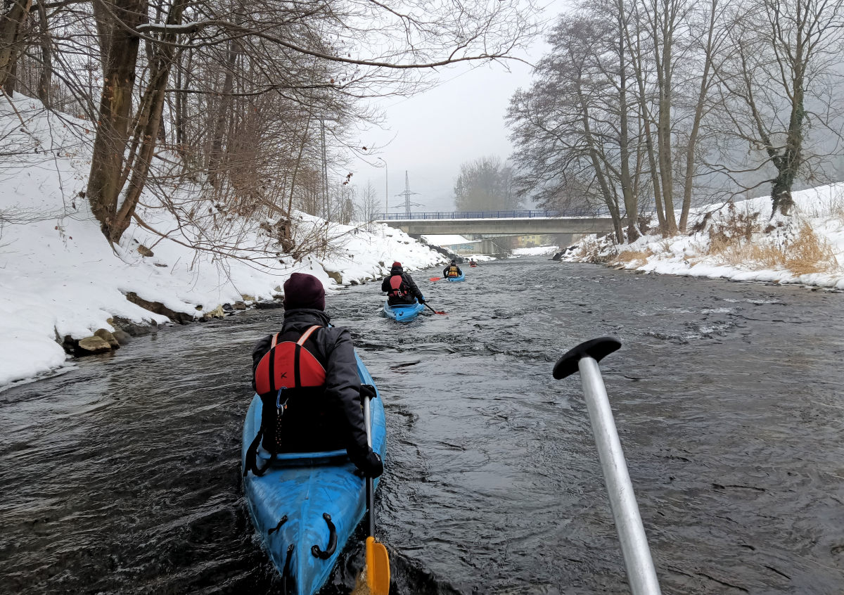 V plánu je splutí řeky Moravy z Hanušovic do Bohdíkova. Mám trochu obavu, jak to bude se zamrzlou řekou, aby se vůbec mohlo dát plynule jet. Ledové kry, zamrzlé vracáky a časté zužování řeky narůstajícími ledy od břehu do úzkého proudu uprostřed řeky, který se nakonec ztratí kdesi pod ledem, už mám taky za sebou. Ne vždy to bylo veselé a bezpečné. Jízda v zimě prostě má svá specifika.