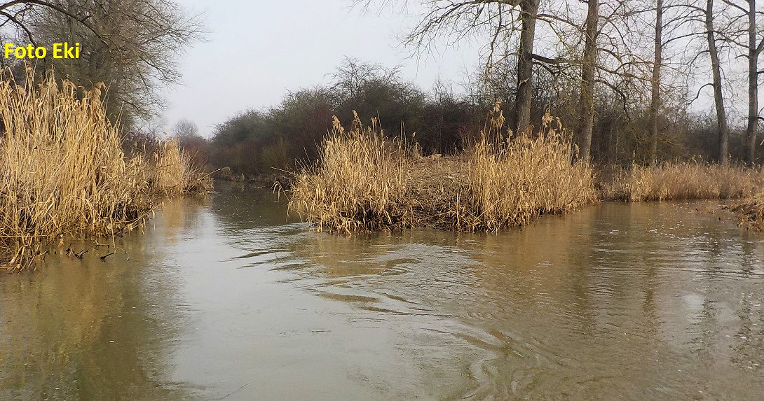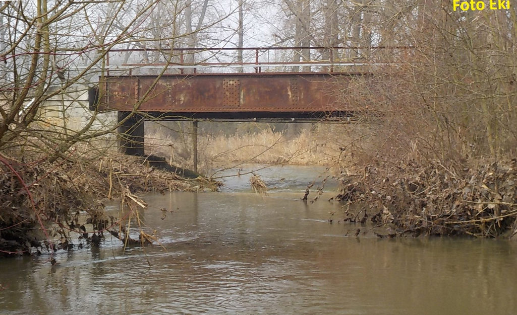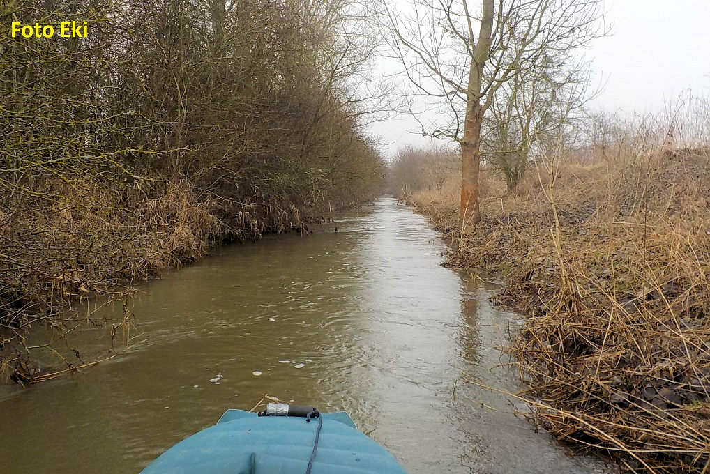 Splutí Mrliny můžete za dostatku vody zahájit třeba na jejím levostranném přítoku Štítarském potoce. Na potoce leží u Dymokur několik velkých protáhlých rybníků. Já začal po tání jednoho únorového dne až pod nimi, u železniční zastávky Svídnice.