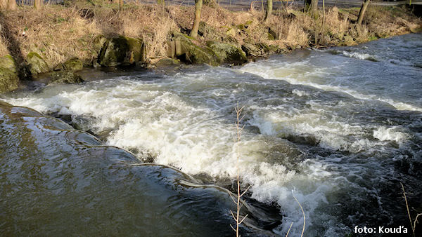 most mostek dla pieszych i następujący zapora v 2,0 m – začátek regulace, dalej 1 km kilka zapora (schodek) !! 1,0 km |