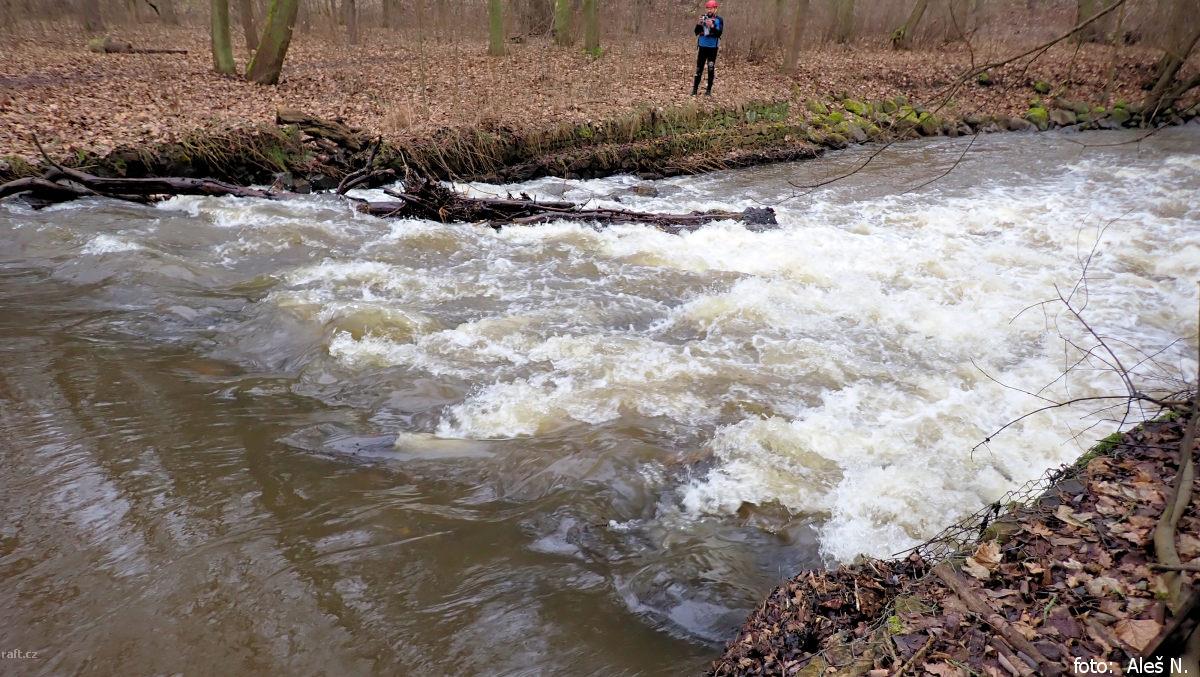 r.km 11,9 Jez u Nehasic 6.3.2022, stav 31cm (0,95m3/s) v Postoloprtech